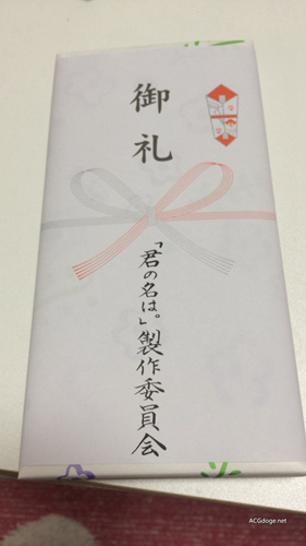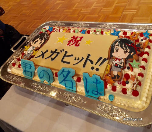 动画的庆功会有两种一种是动画真的大卖大热举办庆功会,让所有制作人员和声优一起热热闹闹。还有一种庆功会就是作品差评如潮光盘销量不忍直视口碑暴死但自己挖的坑跪着也要开个庆功会,例如《迷家》都开过庆功会,虽然水岛努和冈田麿里根本就没参加。大多数的动画庆功会上会给到场者送点小礼品作为纪念,而在 10 月 12 日晚上举办的《你的名字。》庆功会上制作委员会很开心的为每位到场者送上价值 1 万日元的百货商店购物券